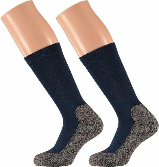 Blauwe wandelsokken dames maat 35/38. Lange hiking sokken voor dames. Deze Coolmax wandelsokken kunnen het hele jaar gedragen worden dankzij de lange hals. Het anatomisch gevormde voetbed zorgt voor een optimaal comfort tijdens wandelingen en het Coolmax systeem houdt de voeten koel, voor een optimaal klimaat. De sokken zijn handgeketteld en hebben dus geen voelbare teennaad. Ook hebben deze sokken een versterkte teen en hiel voor een langere gebruiksduur.