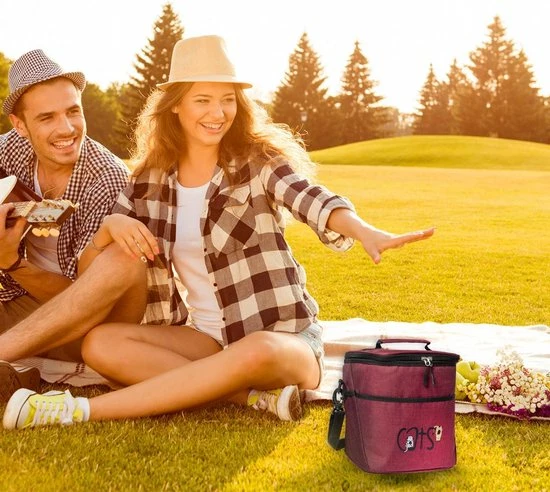Het is erg handig dankzij het ontwerp en de functionele kenmerken. De stof en materialen hebben thermische isolatie en waterdichte eigenschappen. De stof met hoge thermische isolatie laat de lucht niet van binnenuit naar buiten. Evenzo voorkomt deze voedseldrager ook dat de lucht van buiten naar binnen komt, zodat uw eten en drinken meer dan 4 uur warm en koud blijven zonder ijsvorm.