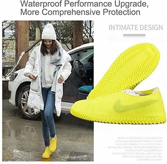 Wil jij je schoenen langer mooi houden en gemakkelijk beschermen tegen vuil en regen? Kom je regelmatig in het zwembad en ben je op zoek naar handige overschoenen voor in het zwembad? Kies dan voor onze waterdichte overschoenen. Onze overschoenen zijn gemaakt van siliconen en elastisch, waardoor ze makkelijk om je schoenen sluiten. Bovendien zijn de schoenhoesjes herbruikbaar en dus duurzaam, waardoor je ook rekening houdt met het milieu. Deze schoenbeschermers zijn geel en geschikt voor de schoenmaten 40 t/m 46.