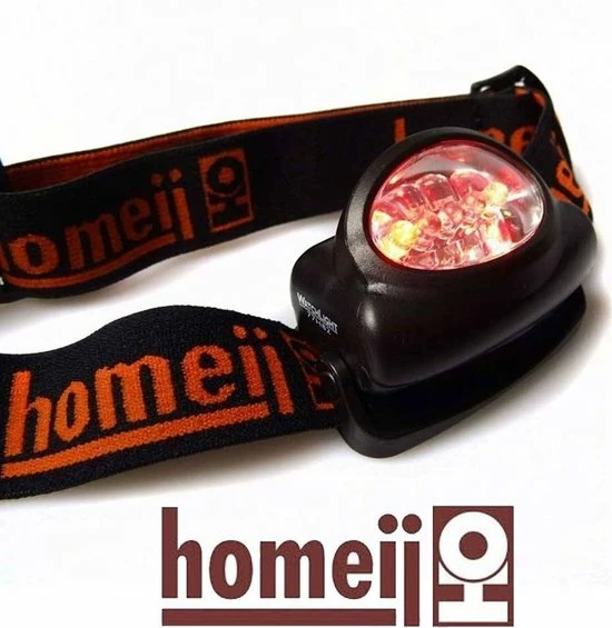 Kenmerken van deze Homeij hoofdlamp: • 3 witte LED’s en 2 rode LED’s • Lichtbundel ca. 12 lumen • Lichtbereik ca. 30 meter • Behuizing van sterke ABS kunststof • Verstelbare hoofdband • Lichtgewicht • 5 jaar garantie