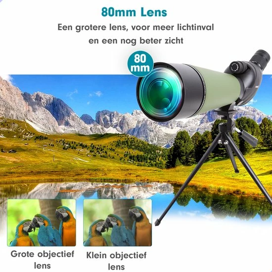 - 20x-60x vergroten – Je bent nooit meer te ver weg! Door de ruime vergroting kan je jouw favoriete object tot op een afstand van wel 5000 meter helder en tot in detail bekijken.