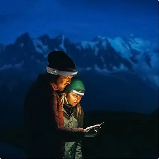 Door de ingebouwde bewegingssensor schakelt u de hoofdlamp in en uit met de beweging van uw hand. De lamp is oplaadbaar via USB.