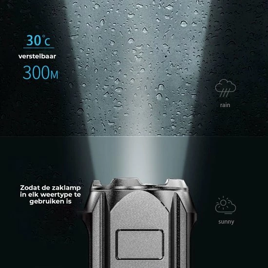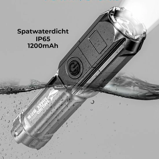 Door de inzoombare verlichting werk je met een brede of smalle lichtstraal. Voorzien van een fel, medium, stroboscoop en SOS signaal verlichting is deze krachtpatser alles wat je nodig hebt. De krachtige XPE LED is sterker dan autoverlichting en zorgt voor een geweldige lichtstraal. Opladen doe je met USB en de lamp is spatwaterdicht IP65. De 2000 lumen lichtbron zorgt voor een ontzettend krachtige lichtstraal.
